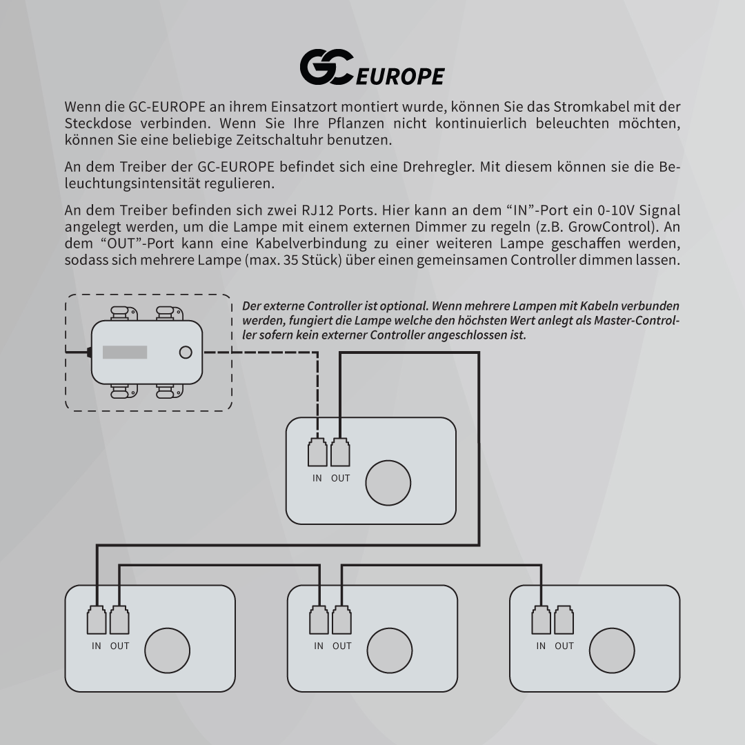 Die Greenception GC-Europe 250W ist die ideale Lampe für Grower mit mittelkleinen Flächen, die Wert auf Premium-Qualität, energieeffizientes Vollspektrum und ruhigen Betrieb legen. Ob Wachstum oder Blüte – mit dieser Lampe bist du bestens ausgestattet.
