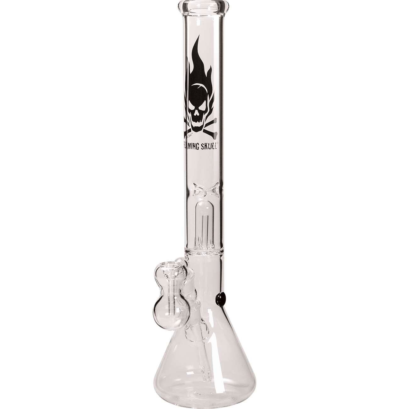 Black Leaf® Icebong mit Kuppelperkolator. Eine IceBong aus klarem, 5mm dickem Glass und passendem klaren Aschefänger. Auf dem Rauchrohr befindet sich das Black Leaf® Flaming Skull Logo. Die Wasserkammer bildet zugleich auch den Standfuß. Alle GPER-Modelle sind mit Kickloch und Stopfen ausgestattet.